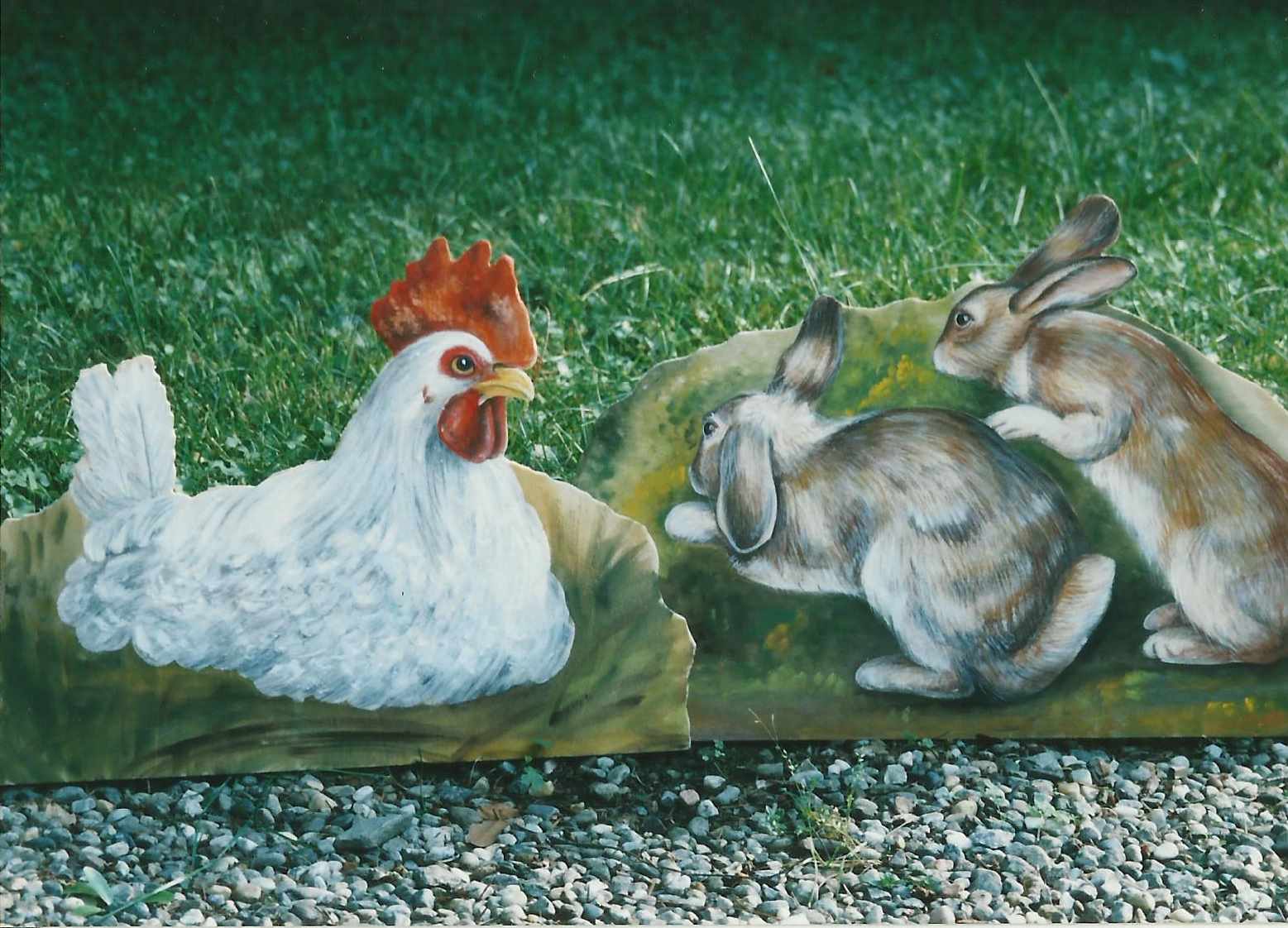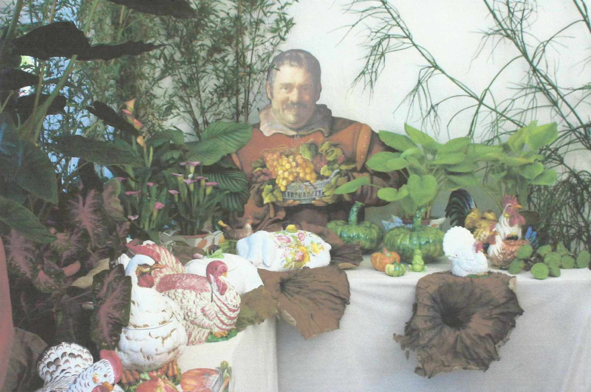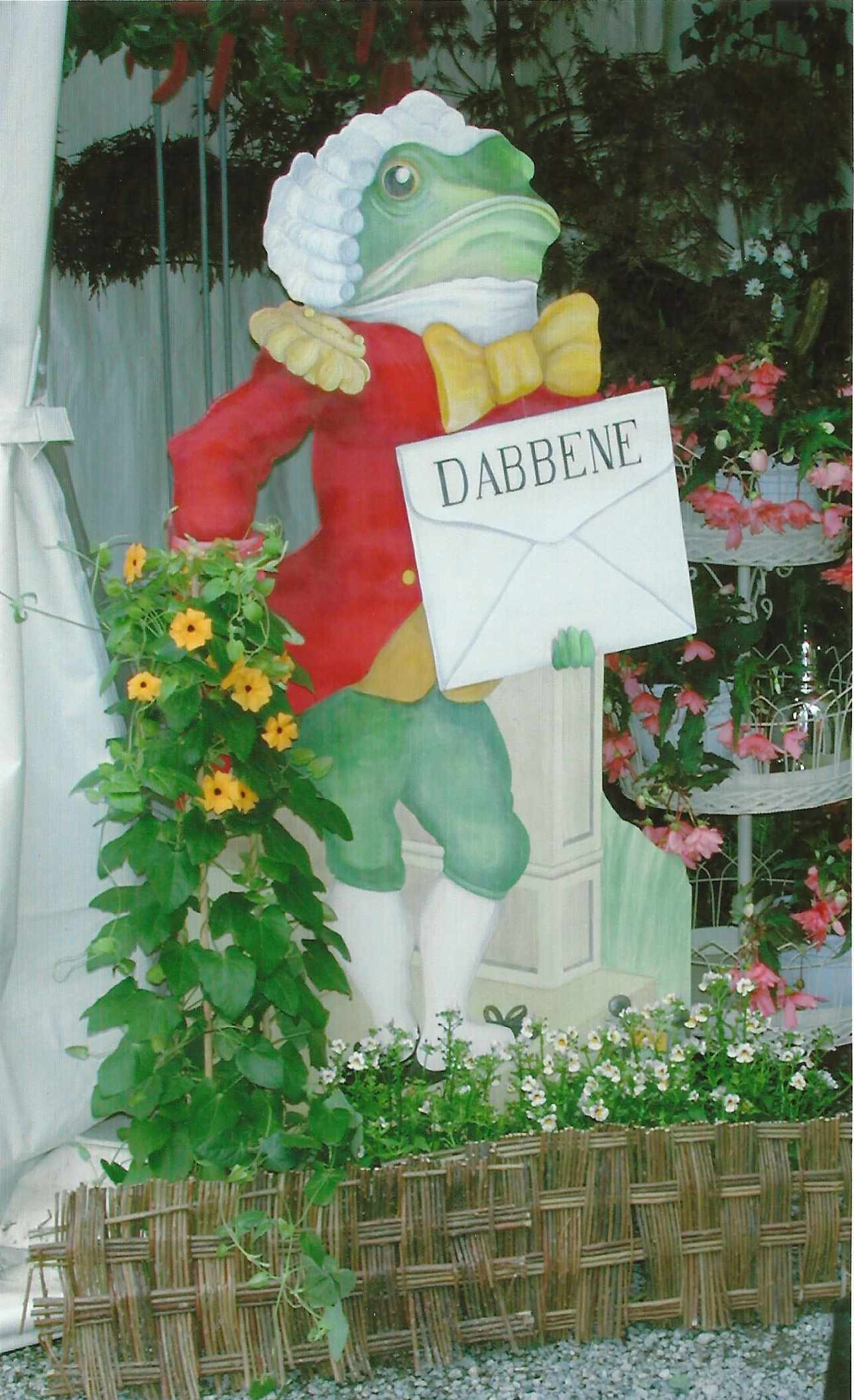 Sagome in legno tagliate e dipinte a mano fanno rivivere i personaggi di Alice nel paese delle meraviglie nello stand di Dabbene a Orticola 2004