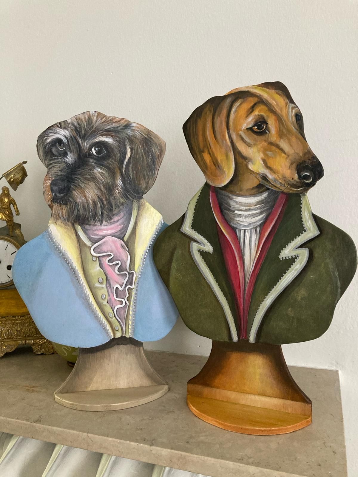 Nell’800 nasce un genere pittorico i cui autori sono chiamati “les animaliers”: cani di razze pregiate o semplicemente i preferiti divengono i soggetti di una ricca iconografia. L’abilità del pittore viene usata per immortalare l’effige del proprio beniamino e conservarne cosi la memoria. L’esecuzione del ritratto ha puramente ragioni affettive e non più di cane trofeo, simbolo di prestigio da trasmettere ai posteri. Il solo ritratto del cane o del gatto consiste nel renderlo parte integrante della famiglia e mantenerne un ricordo duraturo. Nonostante l’avvento della fotografia il commissionare un “portrait” rimane un omaggio a chi, senza nulla chiedere, ha condiviso la nostra vita quotidiana proteggendoci dalla solitudine e portandoci gioia.