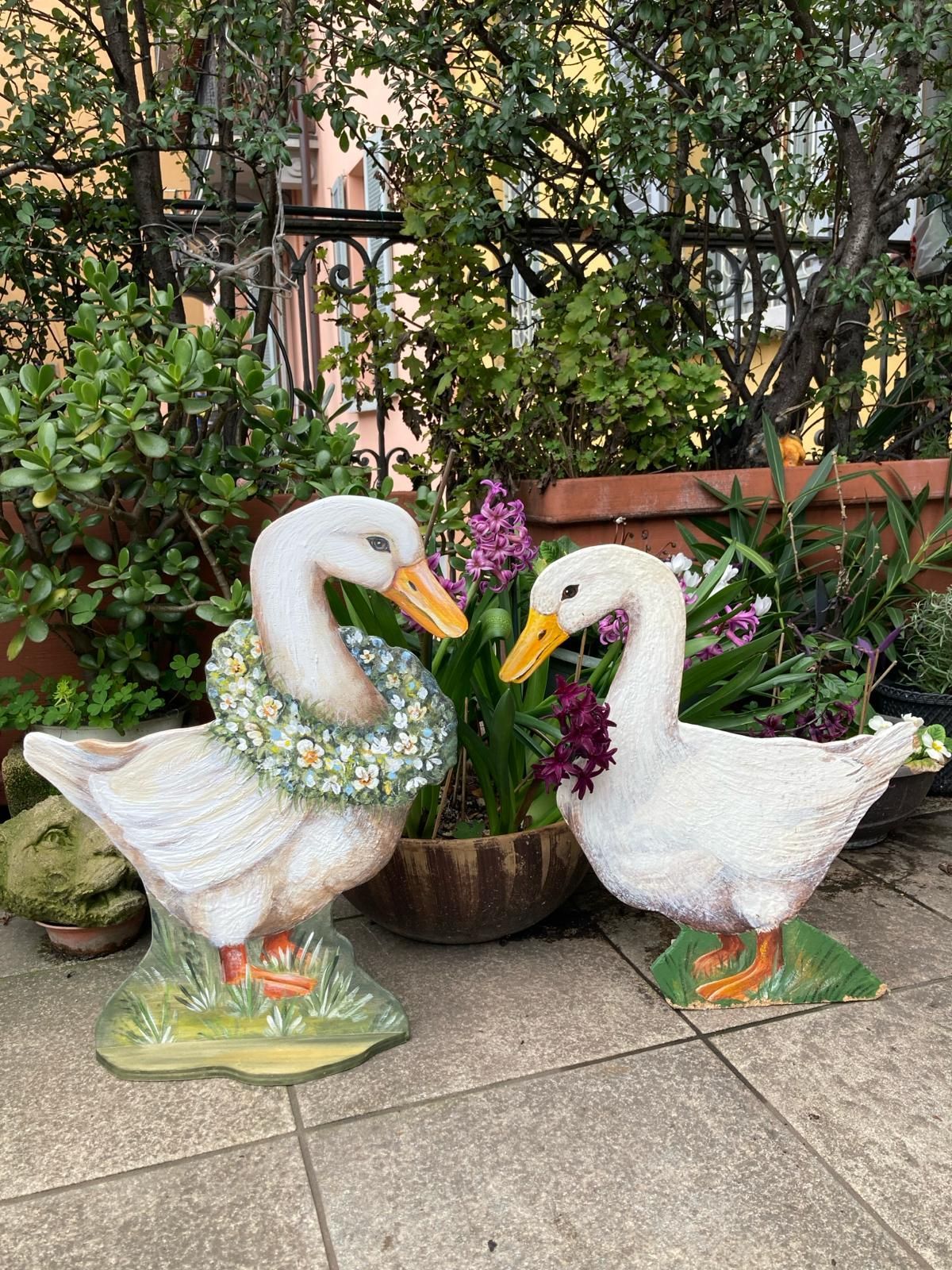 Sagome in legno tagliate e dipinte a mano fanno rivivere la favola di Cenerentola nello stand di Dabbene a Orticola. La carrozza e i fedeli amici topi scortano Cenerentola nei giardini di Porta Venezia