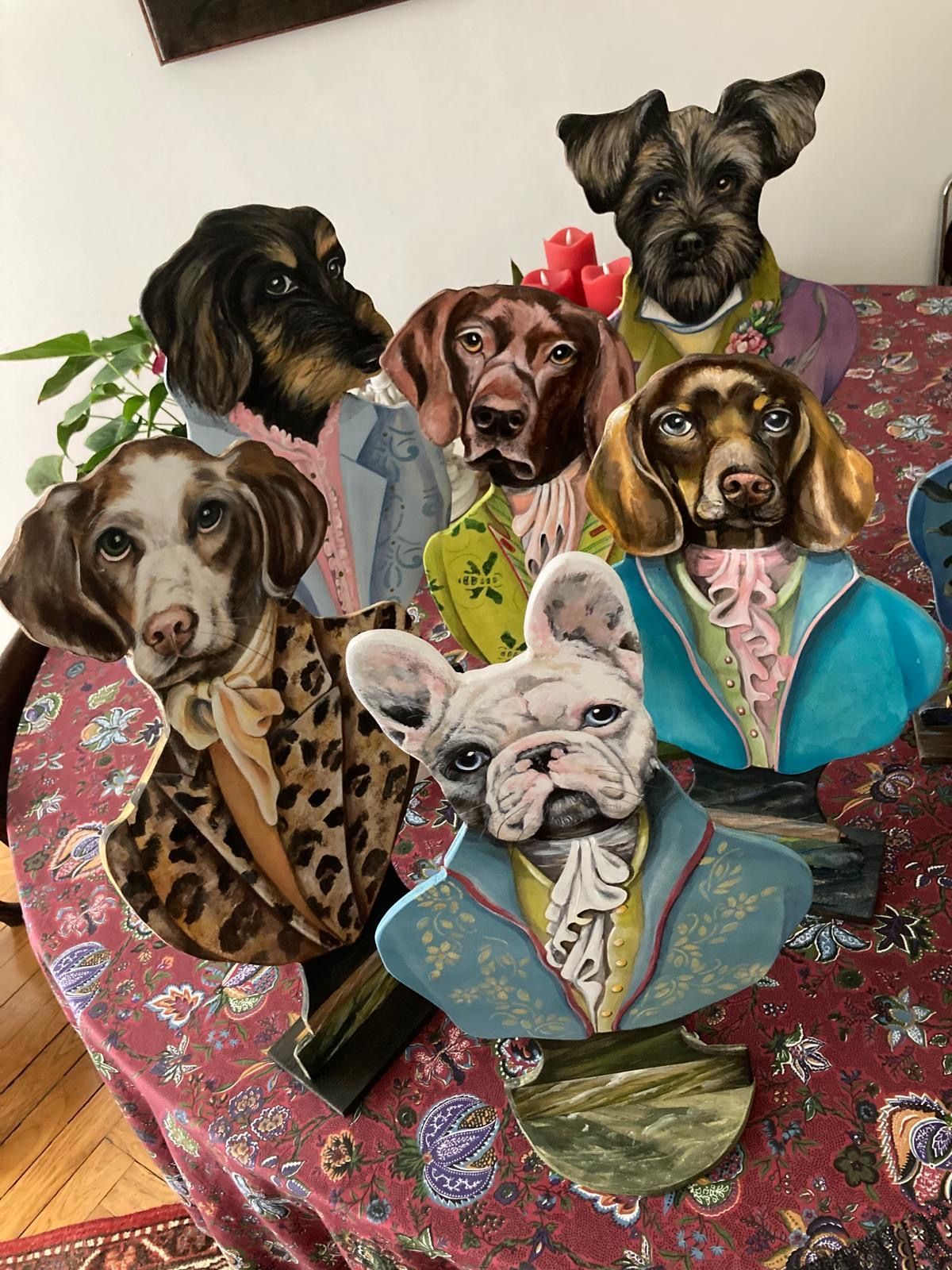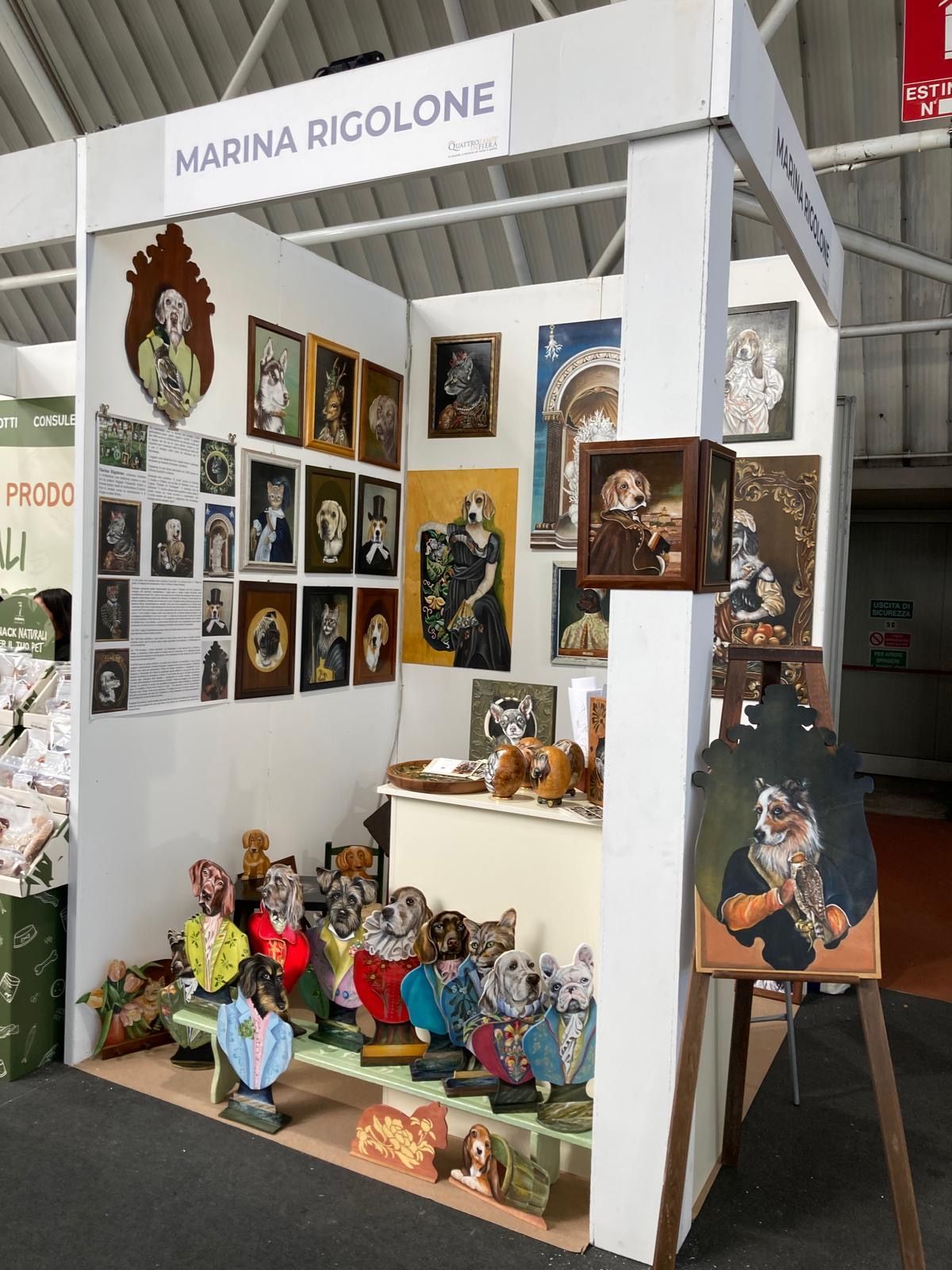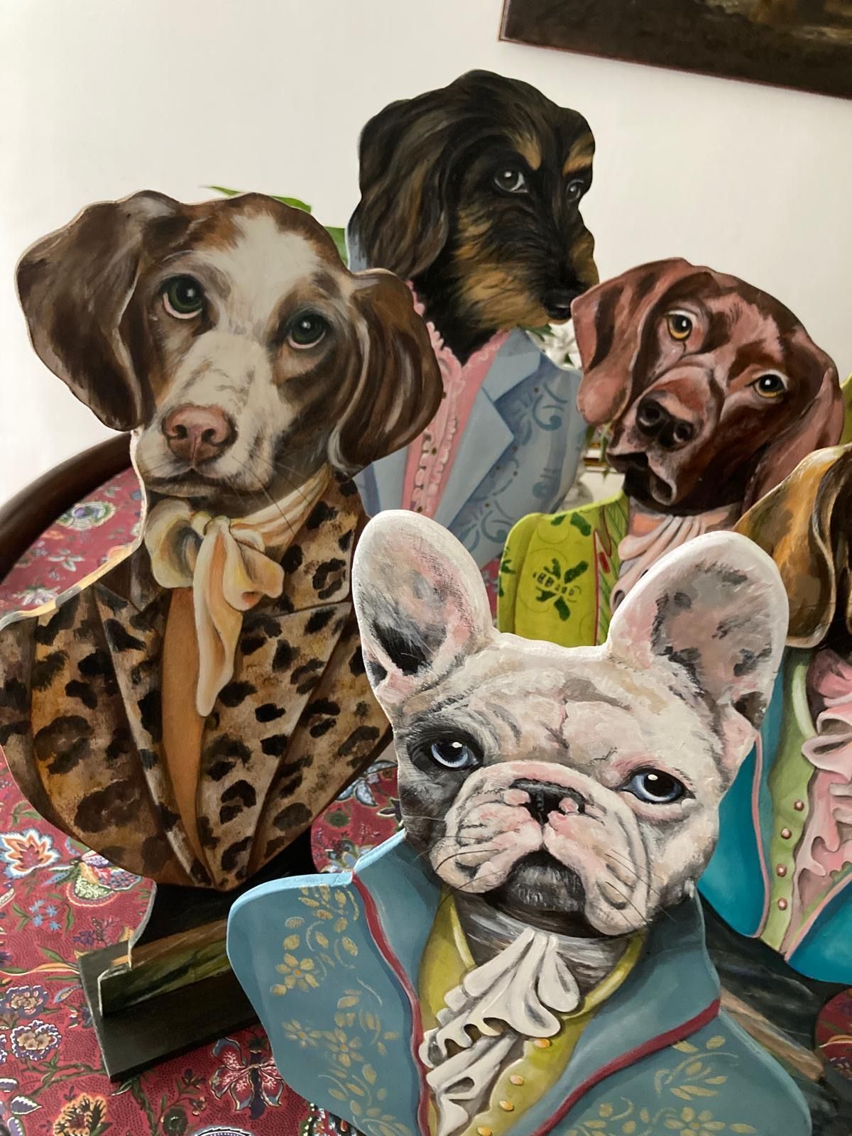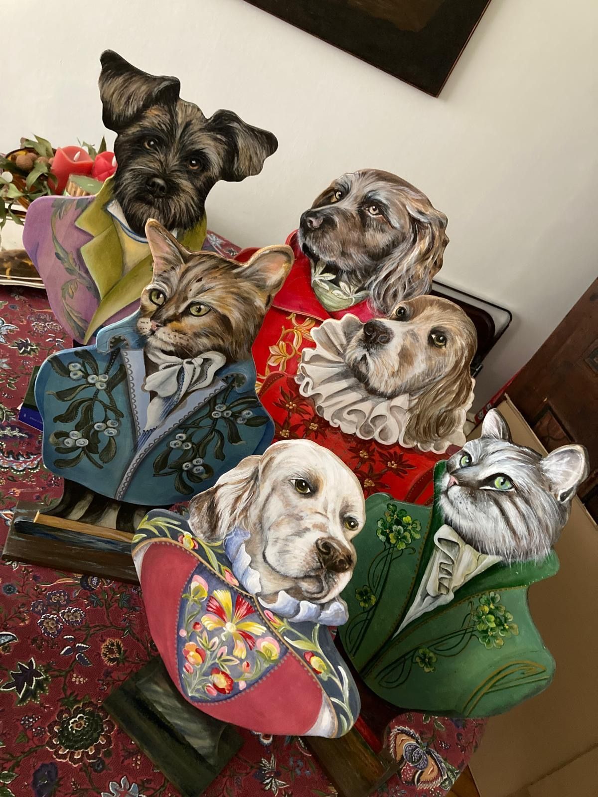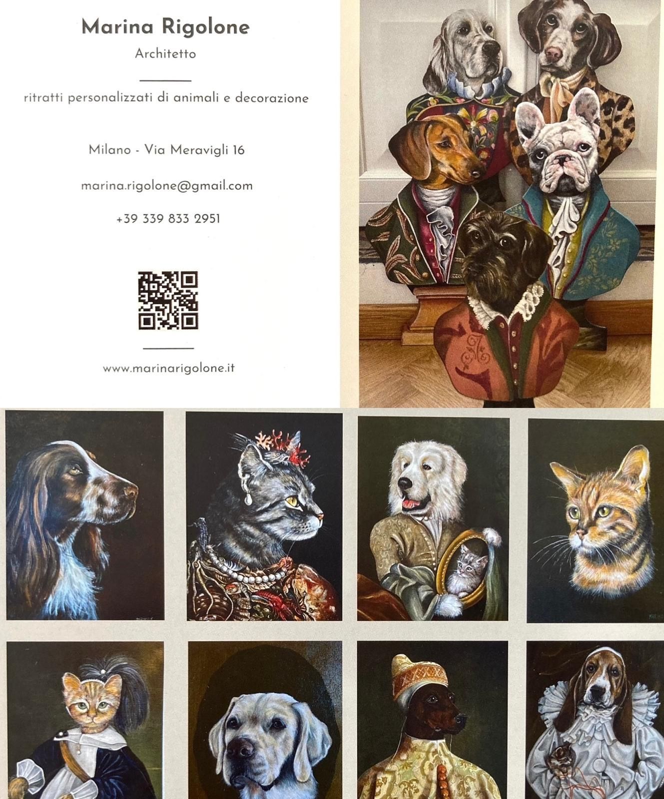 Nell’800 nasce un genere pittorico i cui autori sono chiamati “les animaliers”: cani di razze pregiate o semplicemente i preferiti divengono i soggetti di una ricca iconografia. L’abilità del pittore viene usata per immortalare l’effige del proprio beniamino e conservarne cosi la memoria. L’esecuzione del ritratto ha puramente ragioni affettive e non più di cane trofeo, simbolo di prestigio da trasmettere ai posteri. Il solo ritratto del cane o del gatto consiste nel renderlo parte integrante della famiglia e mantenerne un ricordo duraturo. Nonostante l’avvento della fotografia il commissionare un “portrait” rimane un omaggio a chi, senza nulla chiedere, ha condiviso la nostra vita quotidiana proteggendoci dalla solitudine e portandoci gioia.